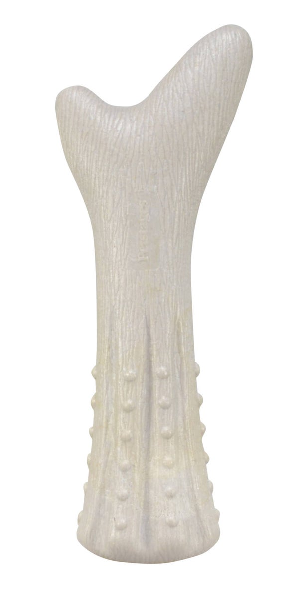 DEERHORN ; een nieuwe lijn kauw speelgoed! Dierenartsen zien steeds meer gebroken tanden veroorzaakt door het kauwen op het harde hertengewei en het toegenomen gebruik hiervan als kauwmateriaal voor honden. Petstages ontwikkelde deze innovatieve hondenlijn dat natuurlijk hertengewei combineert met kunststof waardoor een duurzaam en veilig kauwbot ontstaan is. De gevarieerde structuur van het materiaal verbetert de tandhygiëne en de natuurlijke geur van het bot is onweerstaanbaar voor honden!
