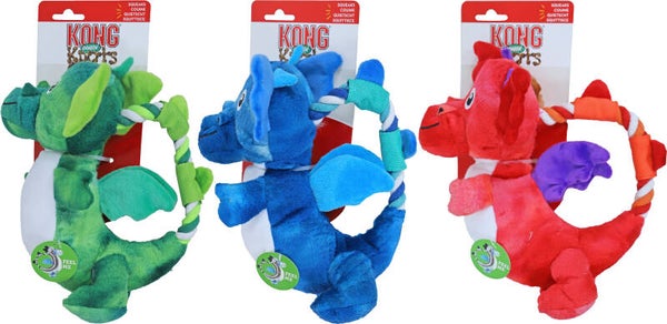 KONG Dragon Knots zijn een perfecte aanvulling op de Knots collectie. Het realistische gevoel van het geknoopte touw aan de binnenkant, de grote pieper en het krakende geluid van de magische vleugels, laat honden in een speelstemming komen en stimuleert hun natuurlijke instincten. Het trekspeeltje van sterk geknoopt touw heeft een minimale vulling, wat minder rommel geeft en verleidt tot langdurig speelplezier.